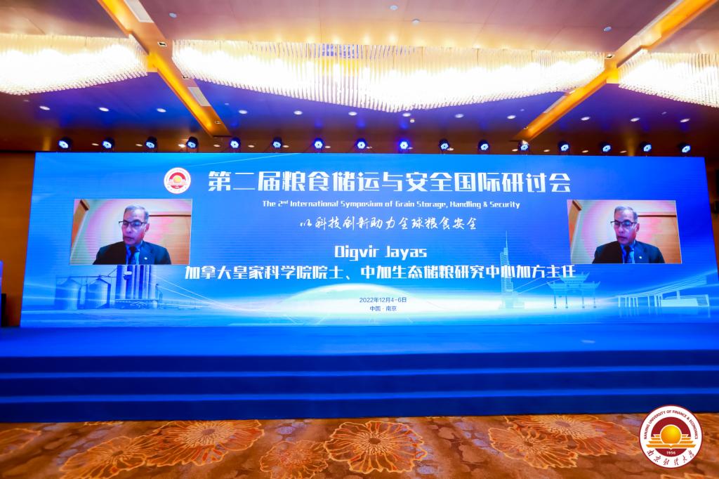 12月5日-6日,由南京财经大学、中加生态储粮研究中心、江苏省粮食流通与安全国际联合实验室、江苏高校现代粮食流通与安全协同创新中心主办,江苏科技大学、江苏省粮油学会等单位联合主办,我院承办的第二届粮食储运与安全国际研讨会在南京举行。中国工程院院士、中国农业科学院油料作物研究所李培武,加拿大皇家科学院院士、曼尼托巴大学Digvir Jayas,国家粮食局原副局长吴子丹,国际食品科学院院士、中国农业科学院农产品加工研究所王强等50余位专家应邀做学术报告。联合国世界粮食计划署、江苏省粮食和物资储备局、国家粮食和物资储备局江苏局、江苏省农业科学院、江苏省粮食集团有限责任公司、中储粮江苏分公司、中储粮江苏质检中心有限公司、江苏省江海粮油集团有限公司、江苏省粮油质量监测中心、江苏农垦米业集团有限责任公司、江苏省粮油学会等单位领导出席开幕式,我校党委常委、副校长邱伟芬、科研处、国际合作与交流处、学院相关负责人及部分师生代表参加开幕式。开幕式由院长方勇主持。
