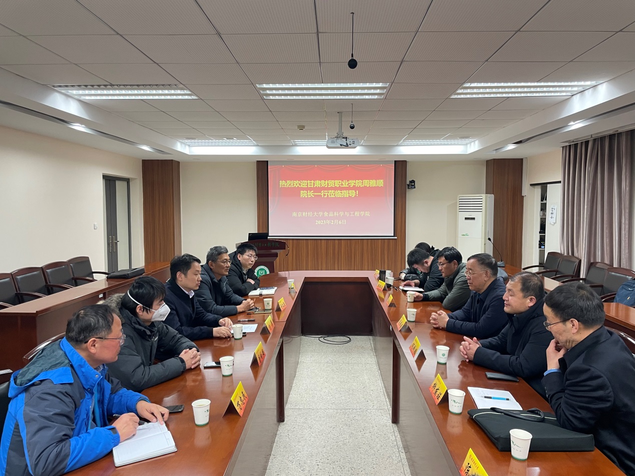 周雅顺院长介绍了甘肃财贸职业学院办学历史、人才培养、社会服务等情况。他表示,当前学院在办学定位、高层次人才引进、科研、就业等方面需要进一步提升,迫切需要与我院在粮食行业人才培训合作、实验室建设、科研合作等方面达成全方位、长期的合作关系。