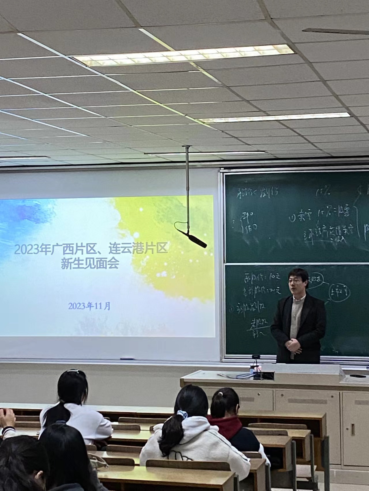 11月20日晚,金沙城js9线路检测中心在德业楼117召开广西、连云港片区新生见面会,旨在培养新生们的爱校情怀和同乡情谊。学院学工办主任石晶晶老师主持此次活动。