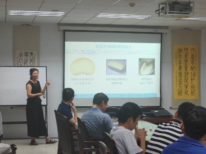 孙昕炀老师从“小麦品种和添加的水分量对低盐面团流变性的影响”、“在低盐条件下对面团黏弹性的建模研究”以及“低盐作用对不同配方和混合条件下的面团中气相的影响”三个方面探究了影响低盐面包加工特性的因素,提出了可以通过选择适合的小麦品种和采用最佳混合时间来改善低盐面团的面包加工特性。