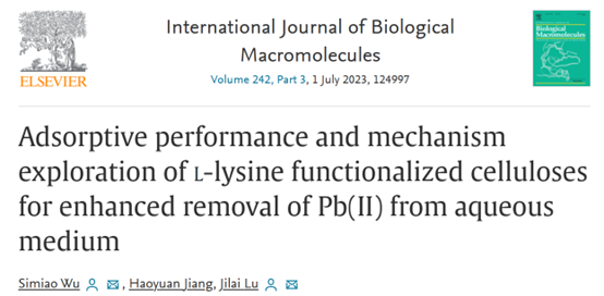 2023年5月25日,金沙城js9线路检测中心吴思邈、陆继来(通讯作者)在国际TOP期刊International journal of biological macromolecules(Q1,IF: 8.025)发表题为“Adsorptive performance and mechanism exploration of l-lysine functionalized celluloses for enhanced removal of Pb(II) from aqueous medium”的研究性论文。