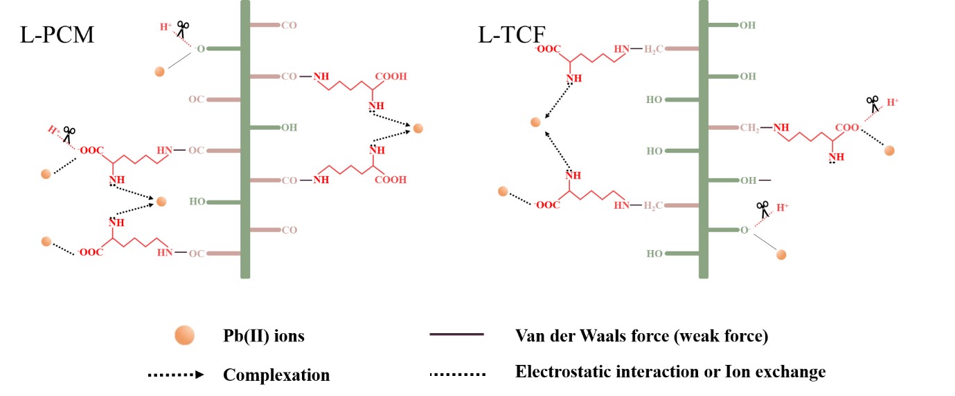 以纤维素为基质,绿色、无毒害的赖氨酸为单体,通过自由基聚合反应成功制得L-赖氨酸功能化纤维素基吸附剂,研究了L-PCM和L-TCF对水溶液Pb(II)的吸附性能,探究了其吸附机理。