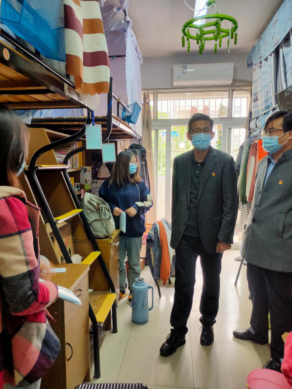 4月23日下午,金沙城js9线路检测中心党委书记许文彪、副书记周进进深入学生宿舍,慰问返校的毕业年级家庭经济困难学生,为他们送去学院的关怀。