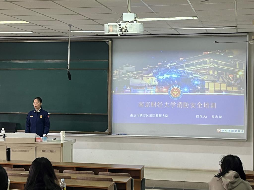 本次安全培训特邀南京市栖霞区消防救援大队沈海旋教官进行主讲。沈教官结合消防安全制度以及周边高校所发生的各类火灾案例,对如何树立实验室消防意识、个人面对突发火灾事故如何进行救灾与逃生等方面进行了全面的讲解与培训。在培训会议上,沈教官通过展示相关实验室图片,与同学们进行互动,寻找与排查图片中存在的消防安全隐患,让大家参与到培训中来,加深对于消防安全的理解。在本次消防安全培训后,由南京财经大学保卫处牵头,带领2023级新生进行应急逃生演练,并向同学们讲解了灭火器的相关使用方法。