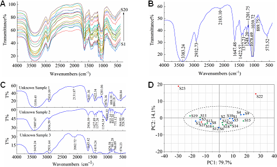针对上述问题,我校胡秋辉教授团队建立了金针菇多糖的扫描电镜、傅立叶变换红外光谱和高效液相色谱多维指纹图谱分,并测定不同来源金针菇多糖对人肝癌HepG-2细胞抑制作用的IC25值,运用多元线性回归分析建立相关性,探讨其谱效关系。结果表明,20批不同来源的金针菇多糖表观特征高度相似,红外光谱和高效液相色谱指纹图谱结合化学计量学方法,证明了金针菇多糖具有特定的标准指纹图谱特征,并能成功地鉴定3种未知来源的金针菇多糖。同时高效液相色谱指纹图谱可进一步对白色和黄色金针菇多糖进行区分。甘露糖(+)、鼠李糖(-)、半乳糖(-)、木糖(-)对HepG2细胞抑制作用有显著影响(P<0.05),上述研究结果以“Multiple fingerprint and fingerprint-activity relationship for quality assessment of polysaccharides from Flammulina velutipes”为题发表在Food and Chemical Toxicology杂志上。我院硕士研究生董禹彤为第一作者,胡秋辉教授为通讯作者。